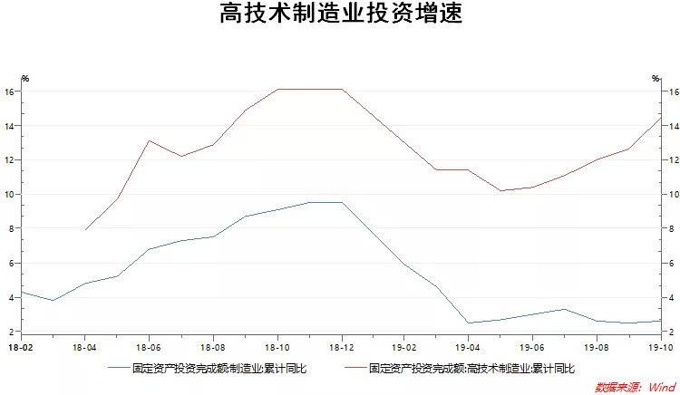 回看2019年,制造业投资增速下行至底部,而高技术制造业投资增速在经历下滑之后很快恢复上行,表现出较强的韧性。展望2020年,在政策的扶植下,科技型企业和高新技术企业将迎来更大发展空间。
