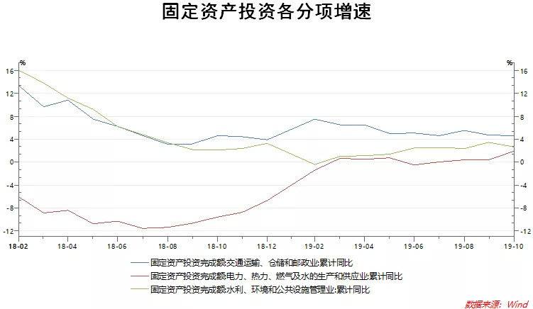 在投资领域,基础设施建设一直是逆周期调节的重要工具。2019年,面对经济下行的压力,“交通运输、仓储和邮政”、“电力、热力、燃气及水的生产和供应”以及“水利、环境和公共设施管理”三大基建领域的投资都恢复正增长。展望2020年,在复杂的内外部环境下,基建将发挥更大的逆周期调节作用、保持经济稳定增长。