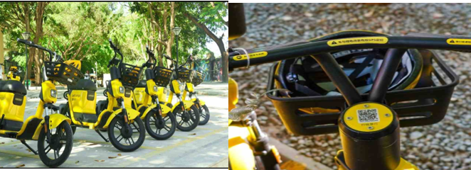 校内有共享电动车,大量的存放在教学楼和宿舍附近,扫码支付、无需押金、方便快捷。