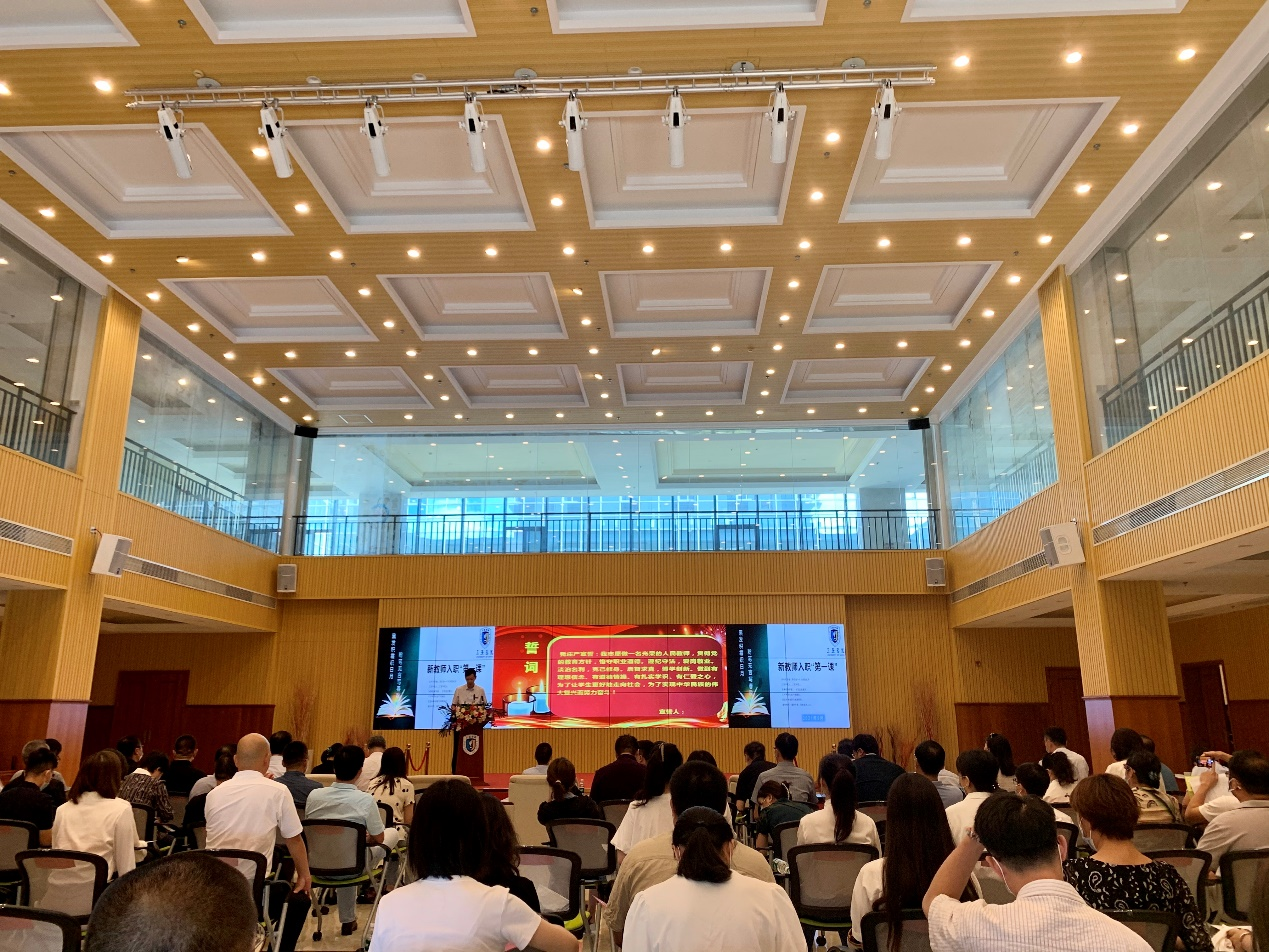 在本次活动中,陆丹校长从大学教师印象,大学教师的情怀、理想,大学教师的职业道德,大学教师的两种属性,大学教师与人才五个方面,为新进教师讲授了教师职业“第一课”,为新教师、新学期的工作精彩开篇。最后,全体新进教师进行了入职宣誓,并由学院学生向新进教职工献上鲜花与祝福,一同向教育梦想致敬。