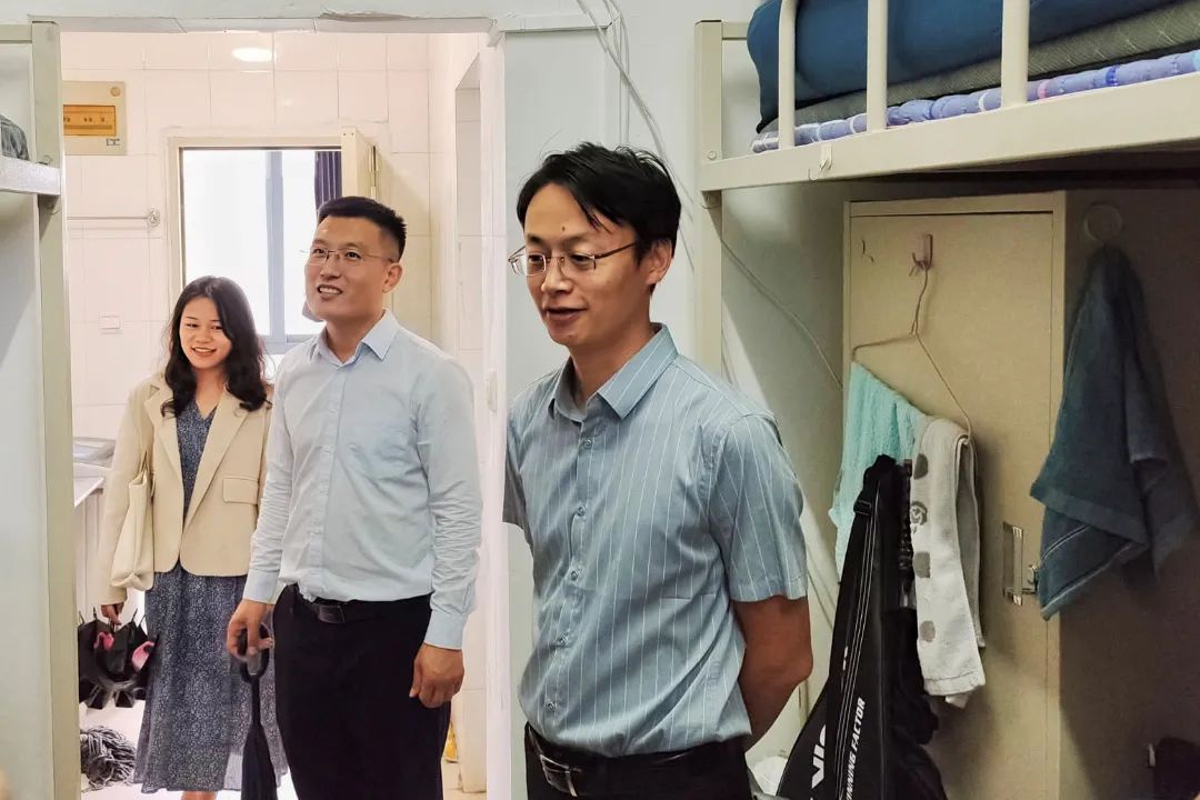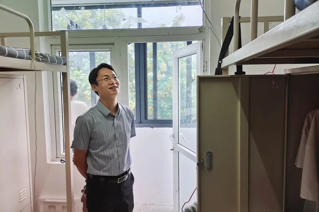 走访过程中,王圣书记与同学们进行了亲切交流。他详细询问了新生们是否适应新环境,是否能够适应大学学习和生活节奏。尤其强调了台风天气需要注意的具体事项。同时,王圣书记针对个别卫生情况较差的宿舍提出了改进意见。他强调,良好的居住环境可以愉悦身心,有利于同学们的学习和生活,大家应该在力所能及的情况下,营造干净、明亮、整洁、舒适的宿舍环境。