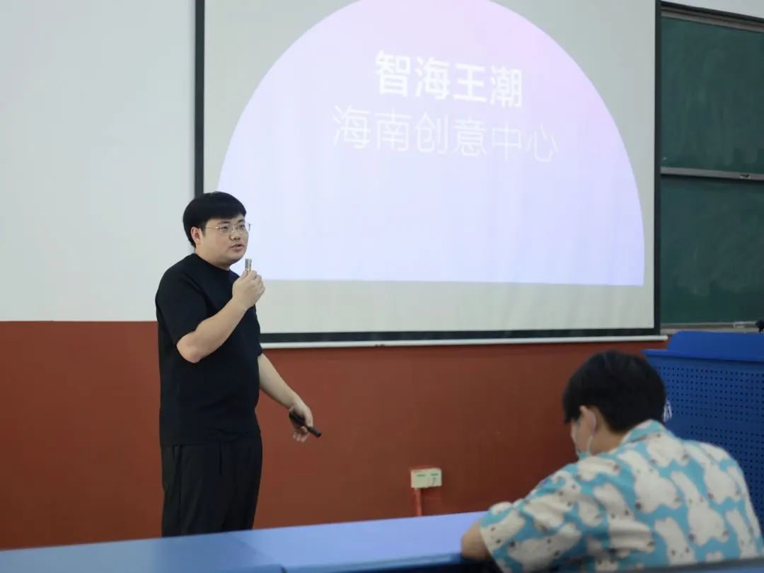 随后,智海王潮海南创意中心三亚区负责人谢代思,在工作能力、理想目标、自我认知等多方面为同学们进行讲解。并指出理想和现实之间存在差距,同学们要脚踏实地,认清现实,在求职就业过程中发挥所长,找到自己真正适合的职业与岗位。