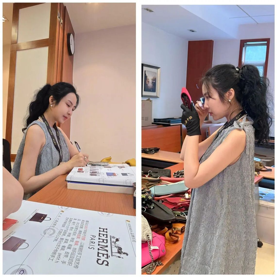2025年暑期,田园老师赴上海中检集团总部参与奢侈品鉴定师认证培训。在封闭式训练中,她系统学习了箱包、腕表、珠宝等品类的鉴定技术,覆盖从五金件氧化痕迹分析到面料显微结构比对的全流程。通过比对Hermès、LV、Prada、Burberry等30余个品牌的200余件实物样本,田园老师掌握了专业的鉴定技能,最终以理论考核100分、实操鉴定100%准确率的成绩通过认证。