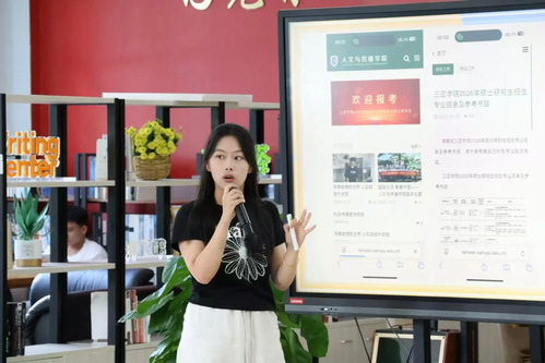 为帮助本科生明晰考研路径、缓解备考压力,人文与传播学院于10月23日下午14时在学业大厅举办“研途有光 朋辈引航”学业指导活动。本次活动特别邀请到学院首届国际中文教育专业的三位研究生宿潇丹、杨静文、李瑾言分享备考经验,为有意考研的同学们搭建了一个“面对面”交流的互动平台。
