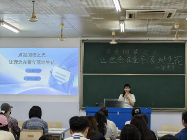 2025年11月4日,三亚学院人文与传播学院邀请三亚市教育研究培训院幼教教研员陈惠芹老师,为国幼2301班学生带来了一场题为《幼儿园阅读分享活动的实践与探索》的专题讲座。本次活动是人文与传播学院推进产教融合、强化实践教学的重要环节之一,旨在通过行业导师的现场指导,提升学生的专业素养与教学实践能力。