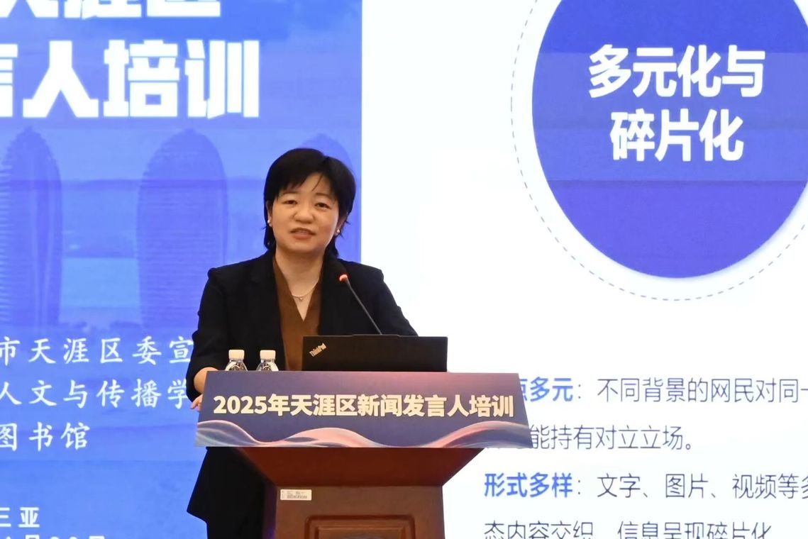 2025年11月20日上午,由中共三亚市天涯区委宣传部主办、三亚学院人文与传播学院承办的天涯区新闻发言人培训迎来了第二天的课程。此次培训聚焦了“社交媒体舆情管理与应急语言服务”主题,目的是提升新闻发言人在全媒体时代下的舆论引导与突发公共事件中的语言表达能力。