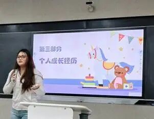 邸嘉申着重强调儿童戏剧表演中“受众适配”的核心原则,用生动案例诠释专业技巧:“课程里教的剧本创作逻辑,要落地到幼儿园场景,就得把抽象情感转化为孩子能看懂的动作和台词。比如表达‘开心’,不能只写‘角色很开心’,要具体到‘蹦跳着拍手,嘴角上扬至耳根,喊出欢快的短句’,这样既符合课程细节化创作要求,又能让小观众快速共情。”她还分享了应对不同演出场景的灵活调整经验:面对场地狭小的幼儿园,运用课程空间调度知识简化群舞动作、优化舞台走位;针对低龄幼儿群体,遵循课程“节奏把控”原则缩短独白时长、增加互动小游戏,每一个技巧都体现出她将理论转化为实践的扎实能力。