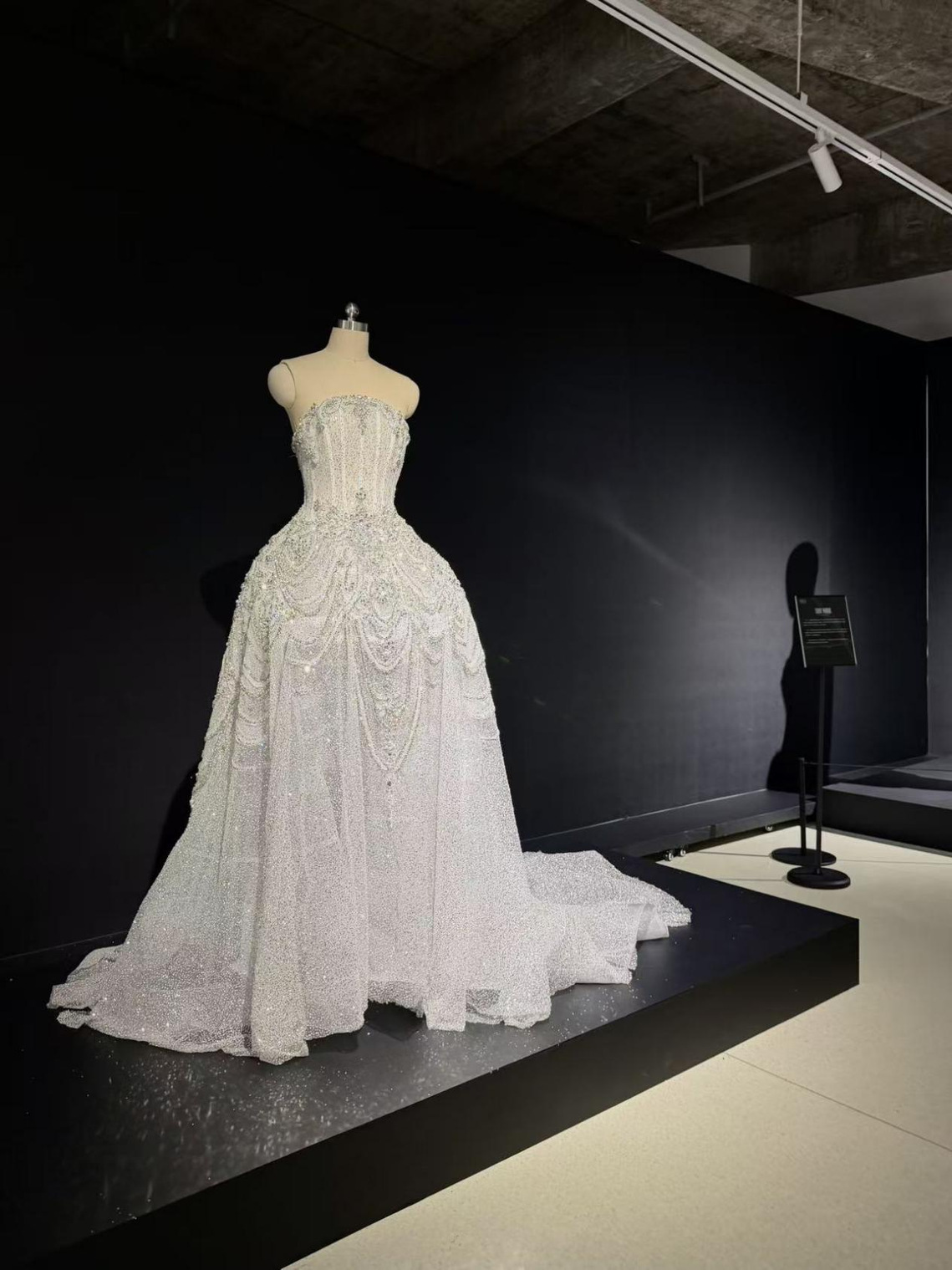 出发前一周,杨兰老师把活动相关知识发至线上沟通平台:与同学们提前预热分享三亚国际婚纱周的相关知识;围绕“first look”情绪点在现场要拍摄至少不同角度细节的20张照片,剪一条至少15秒竖屏短视频,配字幕与音乐,回课当天提交。“有了任务引导,看展就不再无头绪,通过老师现场讲解展品细节重工复古的装饰风格,我更多地体会到了书本理论的实体化;老师还现场指导如何通过调整参数使手机等便携设备也能拍出大片的质感。”2025级时尚传播专业学生刘欣勃说。