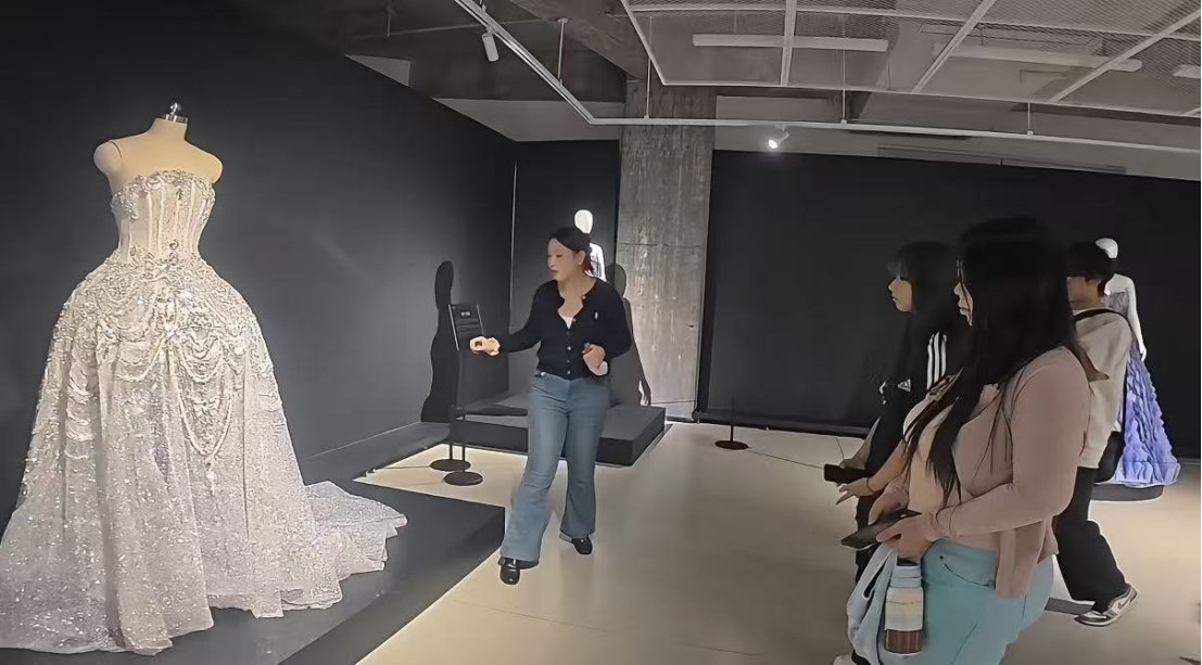11月20日下午两点半,在三亚CBD文物艺术中心,三亚学院人文与传播学院时尚传播专业2025级学生在杨兰老师带领下,将课堂直接搬至“绮梦千年”婚纱展区,开启一场观展场景化教学实践。没有虚构任务,也不只是走马观花,明确学习单:理解时尚文化、完成规定主题拍摄、剪辑短视频回课——一场观展场景化教学由此展开。
