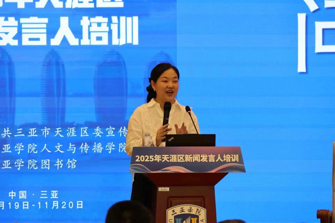 11月20日下午,由三亚市天涯区委宣传部主办、三亚学院人文与传播学院承办的天涯区新闻发言人专题培训模块——“网络问政 高压沟通”的实战演练在三亚学院书山馆激烈上演。本模块教学由人文与传播学院播音系副主任潘娴与周皓副教授联袂担任授课老师。来自天涯区各职能部门的50余名新闻发言人及业务骨干在高度仿真的问政场景中,直面尖锐提问,锤炼应对能力。