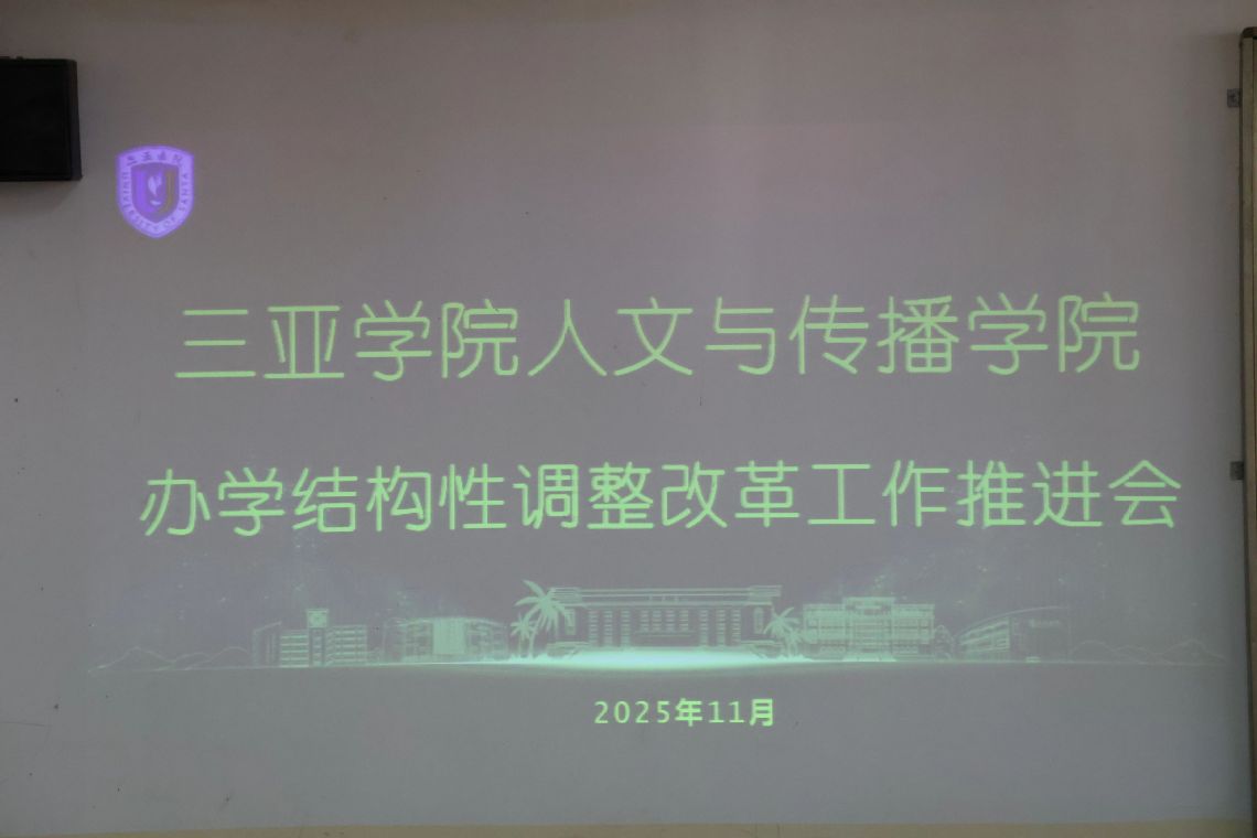 20251126日下午1430分,三亚学院人文与传播学院于书明楼B101教室召开办学结构性调整改革工作推进会,此次会议精准锚定改革核心方向,明确下一阶段教学工作重点,统筹部署改革落地与教学提质各项工作。学院领导及全体教职工出席会议。