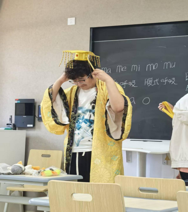 黎婧:对于我来说,我觉得这个课堂非常有意思。因为她让我变得大胆不再感到胆怯,这门课让我敢于表达自己,课堂内容也很有意思,让我们通过肢体表达台词、传递角色情绪,即使是非语言的肢体动作。在团队讨论剧情时,大胆阐述自己的想法、倾听同伴的意见,这不仅丰富了我的词汇量,还能提升语言组织和人际沟通的能力,让我更敢于、善于表达自我。这让我在平时生活中得到潜移默化的提升。