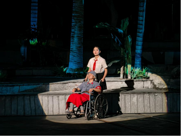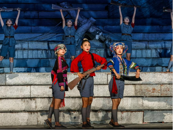 活动最后,全体成员共同观看了大型椰海实景演出《红色娘子军》。演出以自然山水为幕、现代科技为媒,运用全息投影、裸眼3D等技术,将红色革命叙事与海南本土风情深度融合,震撼再现了平均年龄不足二十岁的巾帼战士们浴血奋战的英雄史诗。战火纷飞的舞台、激昂澎湃的旋律,使书本中的历史变得可感可触,红色文化的精神力量深深打动了在场师生,许多人热泪盈眶、心潮起伏。
