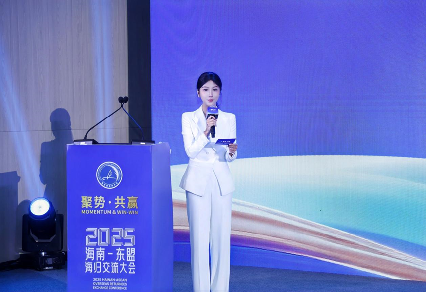 钮驰淼同学主持的板块聚焦“跨境消费”与“项目路演”两大实务议题,是推动海南与东盟在数字经济与跨境电商领域合作的重要环节。她全程引导议程、串联嘉宾发言、组织项目展示,确保环节衔接流畅、交流务实深入,为海归人才、创业项目与投资机构搭建高效对接桥梁。