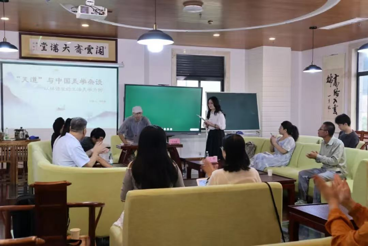 团队的身影活跃在三亚的文化空间中。图书馆、艺术馆里的文学讲座,刘继保的《秦可卿身上的三重谜团解密:身世之谜、葬礼之谜、卧室之谜》、伏涛的《东坡海南心境变迁的启示》是红学、苏学的最新成果,这让古典走向大众,深受三亚市民听众的喜爱。主办方准备开展有关《红楼梦》的系列讲座,这对学术走出书斋,服务社会提供样式。《天道》名家对话系列专题活动,跨学科师生的热烈交流——古典智慧正通过这些平台融入城市肌理。在天道系列活动中,伏涛、许飞、敖敦胡、王娲四位老师参与其中,担任对话嘉宾。值得一提的是王娲老师,她不仅多次担任主持、对话嘉宾,还是活动有力的策划者、组织者,活动的策划文案、活动总结以及推文多出自王娲之手,她的付出赢得参与者的一致好评。也正是她的努力付出,让天道沙龙成为学校学术交流的有效阵地,成为传统文化传播的一个重要平台。