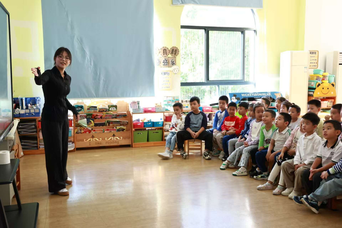 随后,汉语2511班的曹冰琪同学走到小朋友们中间,带来了一堂妙趣横生的《神奇的象形字》课程。她将甲骨文中的日月山川化作可感的图形,把抽象的汉字变成了小朋友们眼中会“讲故事”的伙伴,软声细语里,把汉字的种子种进了孩子们的童心。这一场走进幼儿园的汉字推广,从来不是单向的输出,而是“产教融合”下的双向成长。