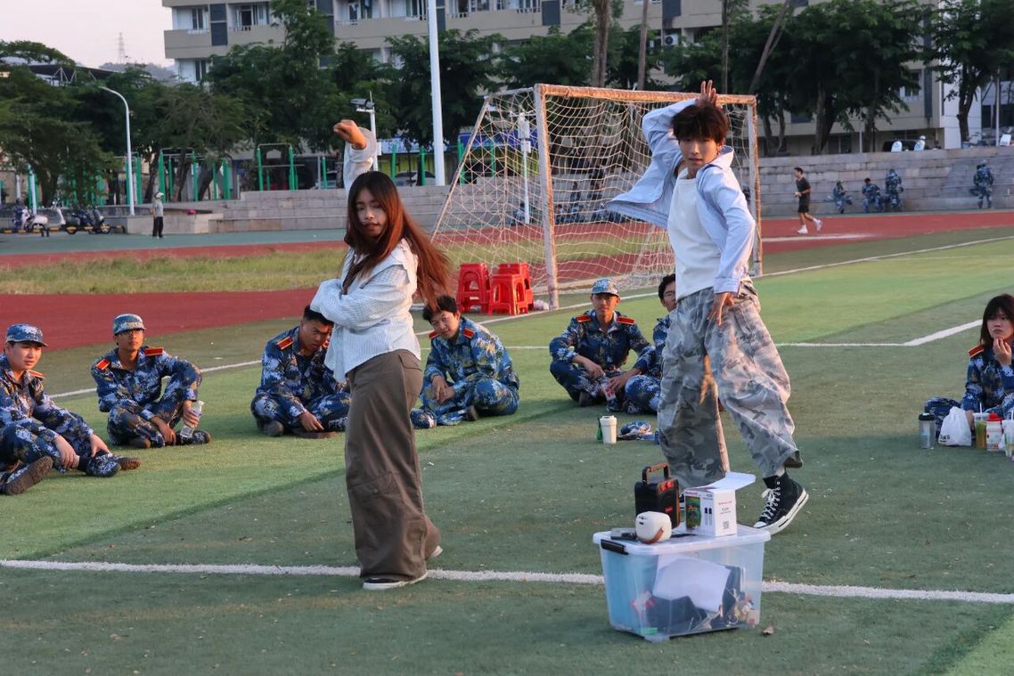 夜色渐浓,星光点点洒落训练场。晚训的余温未散,文娱活动已精彩开场。军训学子们轮番登场,唱歌、跳舞、武术、乐器演奏,各展所长。灵动的舞姿、嘹亮的歌声、真挚的表演,驱散了一日的疲惫,也让青春的活力在夜色中尽情绽放,定格成最鲜活的集体记忆。