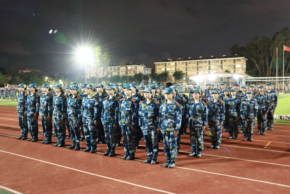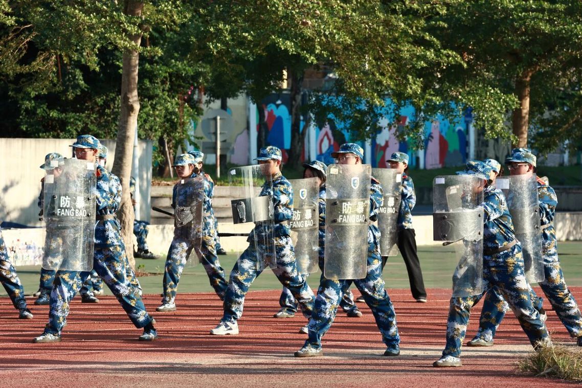 阳光渐烈,爬上帽檐、炙烤肩头,汗水顺着脸颊滑落,砸在训练场的红地上,晕开一朵朵炽热的花。学子们如青竹般笔直伫立,似磐石般坚定不移,任凭烈日考验,始终保持着昂扬的姿态,用倔强与坚持,书写着迷彩青春的硬核篇章。