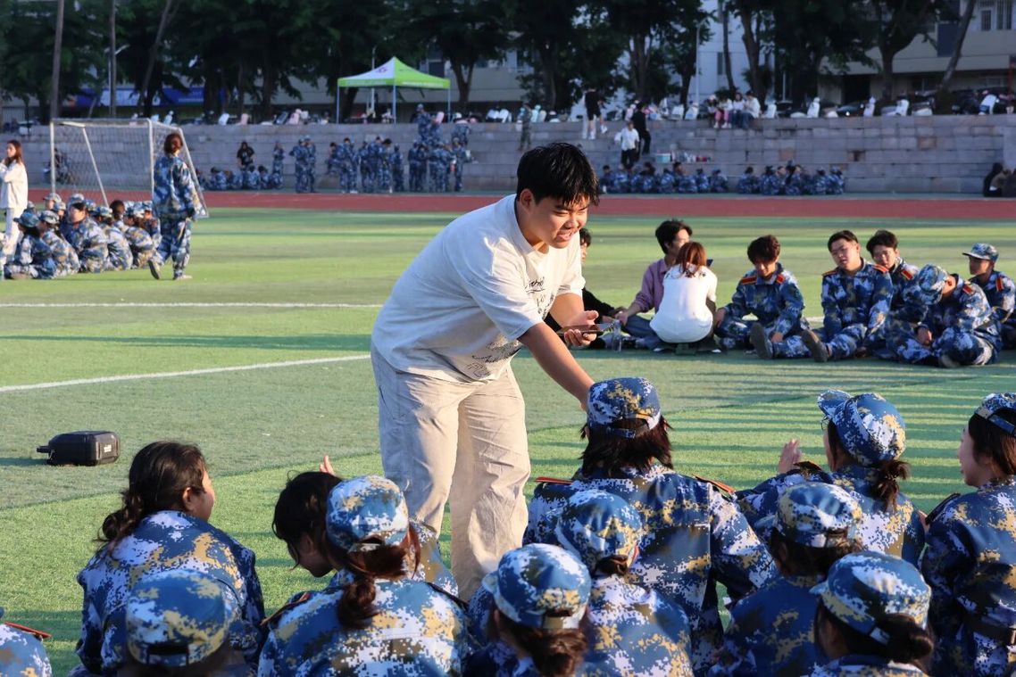 暮色初临,训练场切换成欢乐主场。学长学姐化身训导员,带着精心准备的趣味游戏登场,欢声笑语打破了训练的严肃。大家在协作中拉近距离,在互动中释放压力,这份同辈间的陪伴与热闹,为迷彩时光添上了温暖注脚。游戏结束后,同学们有序就餐,短暂休整,为晚间时光蓄力。