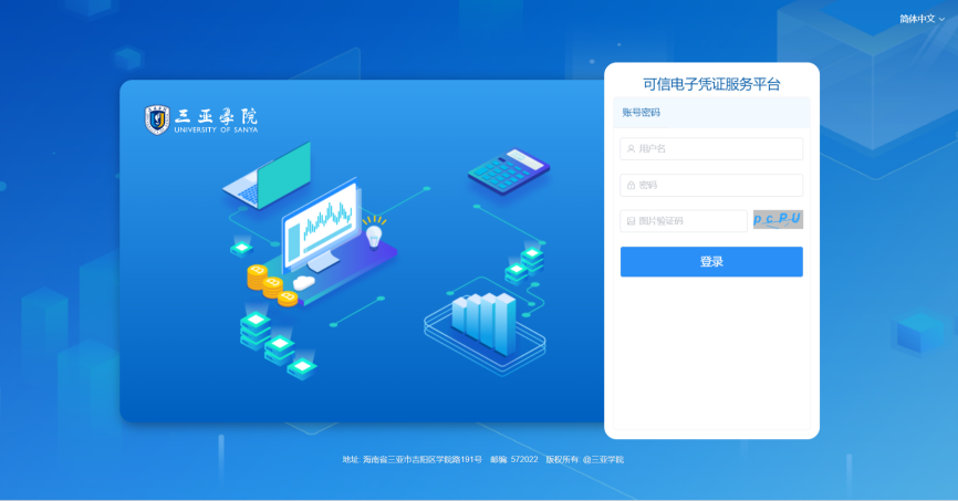 同学们可通过平台网址进入可信电子凭证服务平台PC端,输入账号密码登录(以下密码不含符号“+”)