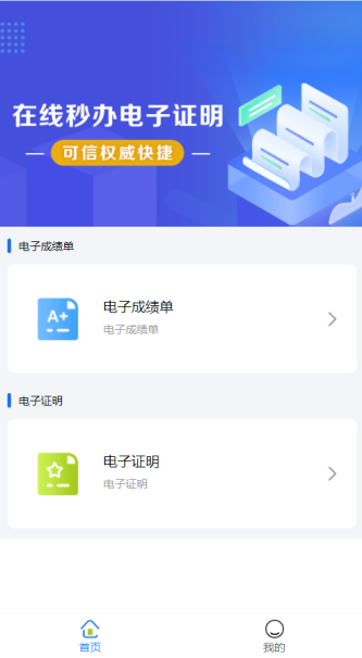 主界面点击【电子成绩单】或【电子证明】,选择所需要的文件类型,生成预览图。