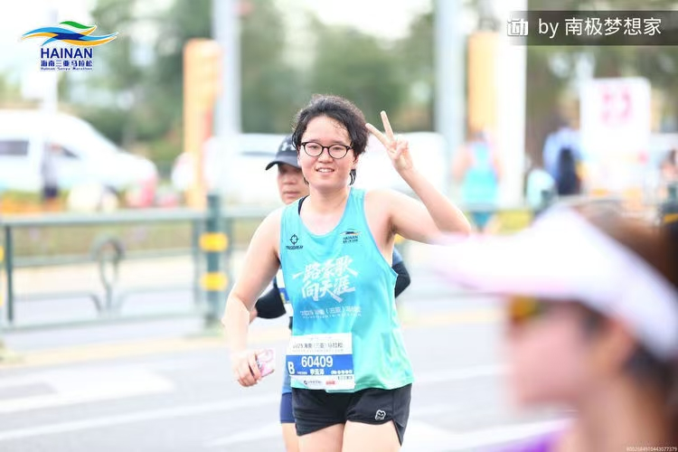 我总愿以跑步为翼,做敢挑战、高能量的女生。工作学习间隙的奔跑,都是马拉松赛道上的底气。三亚藏着我太多“第一次”,这次更是拿到了人生第一块半程马拉松奖牌。赛道上遇见天南海北的同好,听见此起彼伏的呐喊,更听见心底的自我鼓劲。当脚步奔向终点,所有坚持都有了鲜活的意义,未来我会带着这份热望,奔赴更多赛道。