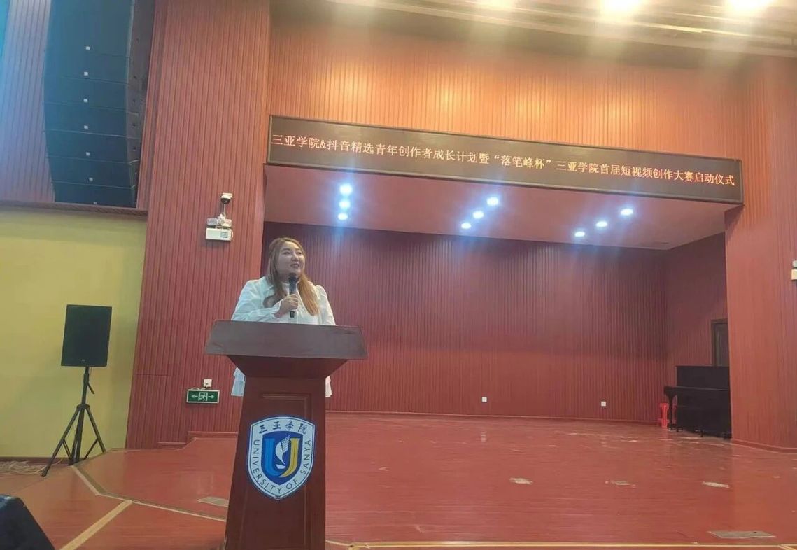 抖音平台代表张丽博详细介绍了“青年创作者成长计划”。该计划由教育部学生服务与素质发展中心指导,与 全国百所高校深度 合作,围绕创作课程、流量扶持、商业变现、线下社区与创作舞台五大模块,为青年提供一站式创作支持。她鼓励学生立足三亚独特的地理文化资源,以真实多元的表达打造个人特色IP,平台将专项政策助力学生实现创作与职业发展的双重提升。