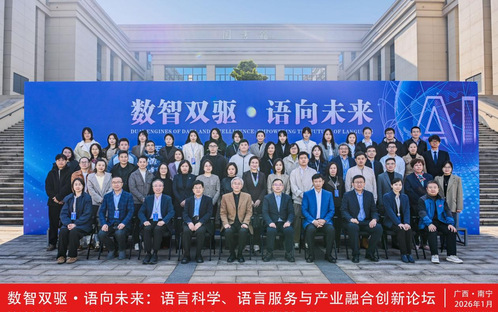 2026年1月10日,“数智双驱・语向未来:语言科学、语言服务与产业融合创新论坛” 在南宁数字科技学院隆重举办。我院金伟、苑洋两位老师带领四名国际中文教育专业研究生组成参会小组,沉浸式参与这场跨学科盛会,近距离对话人工智能、语言科学、国际中文教育等领域权威专家,在思想碰撞中拓宽学术视野,在实践观摩中深化专业认知。