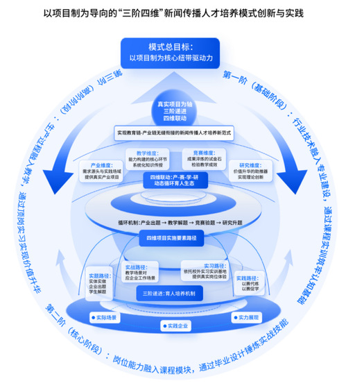 从课程内的小型实践项目到贯穿学期的综合项目,从 “ 虚题实做 ”模拟项目到与企业共建的“真题真做 ” 项目,我院形成了阶梯式的项目体系,让学生在持续的项目实践中完成知识的内化与能力的提升。这种以项目驱动学习的模式,实现了从“教师教什么”到“企业需要什么、学生能做什么”的转变,为新闻传播专业育人注入了全新活力。