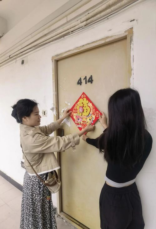 在简单的发放仪式后,人文与传播学院学工队伍走访学生宿舍,深入了解留宿学生的生活状况和实际需求。他们不仅带去了节日的问候,还亲手为每间留宿学生宿舍张贴上喜庆的福字。红纸金字的福字贴在宿舍门头,映衬着学子们喜悦的笑容,让原本安静的宿舍楼瞬间充满了节日的欢快气氛。