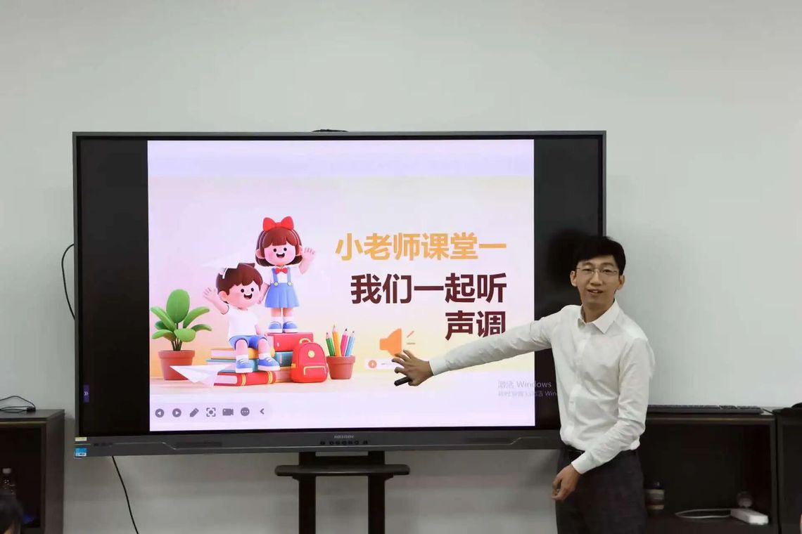 随后,三位青年教师依次进行教学演示。来自汉语言文学专业的张浩老师以“语音的声调”为主题,以海南中西部小学生发音问题为切入点,深入剖析声调发音要领与训练技巧,内容贴近实际,讲解清晰生动。