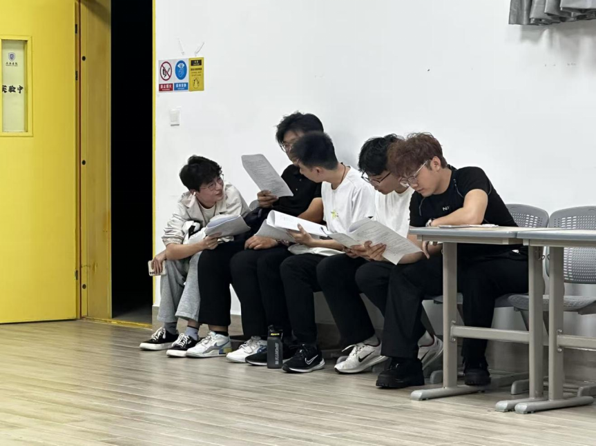 创排首先进入了15分钟的准备工作时间。演员们在熟悉剧本的过程中逐步进入角色,对所饰演人物有了更深入的理解与体悟。大家积极交流,分享各自的表演感受,现场氛围专注而热烈。