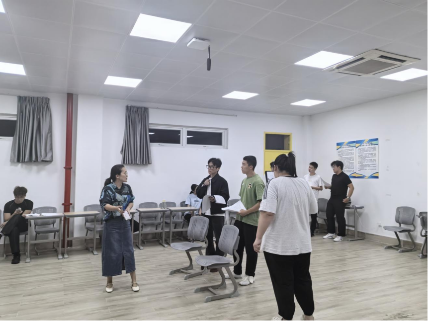 在王宇、顾元元两位老师及导演组成员的细致指导下,演员们逐步熟悉舞台走位、灯光分布及情绪表达方式。通过反复对戏与磨合,大家彼此加深了解,默契不断提升,逐渐沉浸于角色与舞台情境之中。