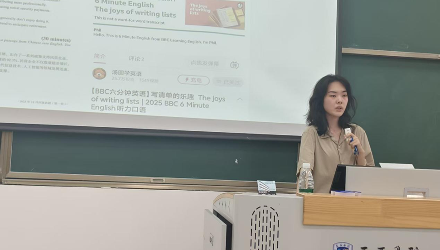 分享会上,吕俊霖结合自身高分通过英语四级的实战经验,从三个维度为同学们拆解备考策略:一是分值权重分析,重点梳理写作、听力、阅读三大板块的得分要点;二是基础能力强化,强调词性辨析、语法应用及词汇积累的重要性;三是应试技巧总结,建议先攻作文稳心态、难题后置不纠结的答题顺序,并提醒同学们保持平稳应考心态。