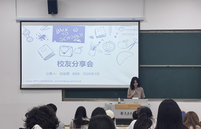 学海漫漫,懈怠只及当下;热忱抛却,迷茫必至前程。分享会上,吕俊霖以这句话与在场同学共勉。她勉励学弟学妹无论身处何种境遇,都不应放下对知识的渴望与精进的脚步,要找到让自己眼里有光的方向,以持续的热忱抵御暂时的迷茫。