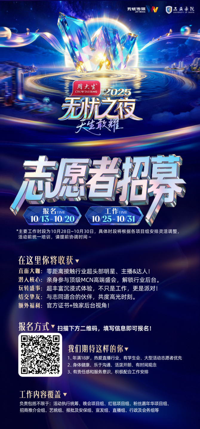- “无忧之夜2025”三亚学院志愿者招募启动