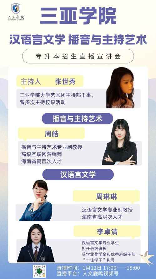 - 三亚学院汉语言文学 播音与主持艺术专升本招生直播宣讲会